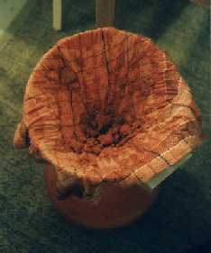 einen Leinen Sack, der wird zu gebunden und das ganze in ein emalieten Metalldurchschlag.